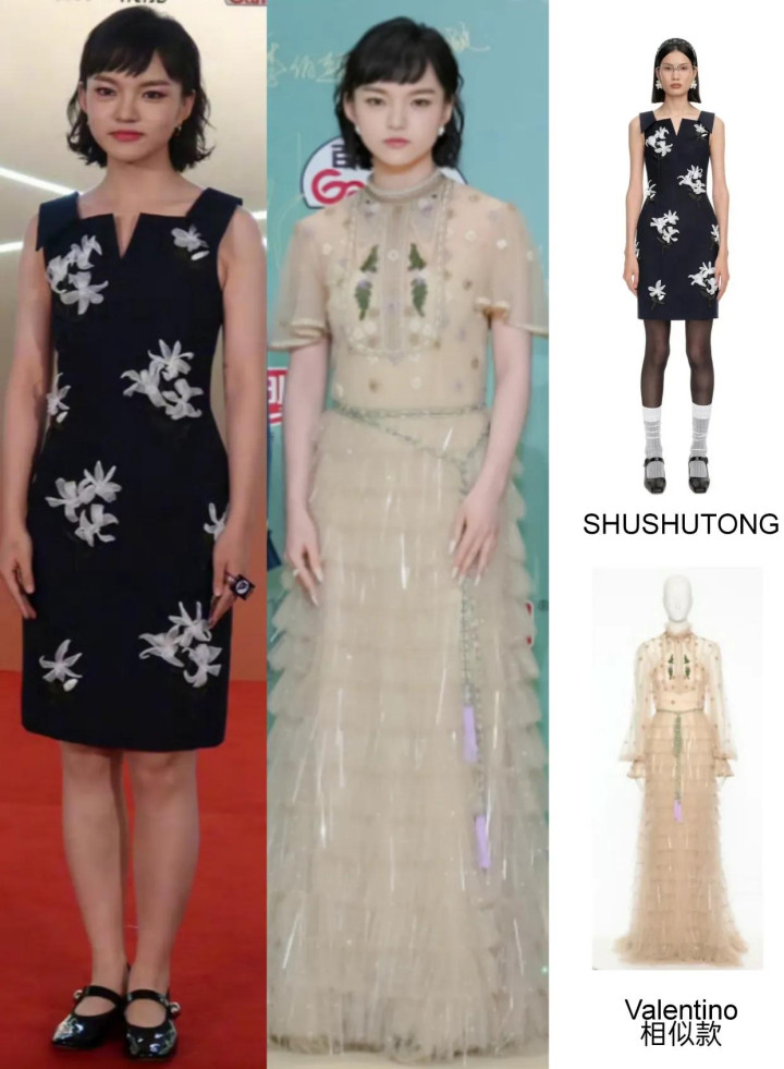 就是每次活动妆造都让人不禁有些一言难尽,现在她终于换风格了,这次的中分造型很适合她,比短发的时候好看很多