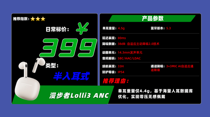 品牌4、漫 步者L olli3 ANC蓝牙耳机