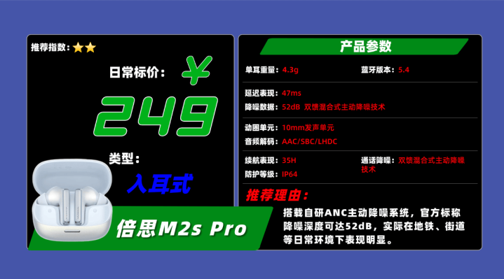 品牌10、倍 思M 2s Pro蓝牙耳机