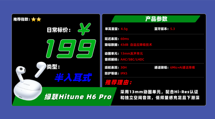 品牌9、绿 联H itune H6 Pro蓝牙耳机