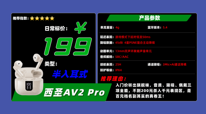 品牌1、西圣AVA2 Pro蓝牙耳机