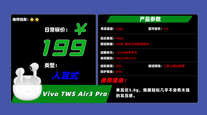 品牌5、V ivo T WS Air3 Pro蓝牙耳机