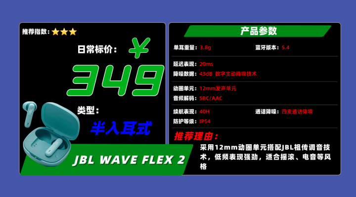 品牌8、J BL W AVE FLEX 2蓝牙耳机