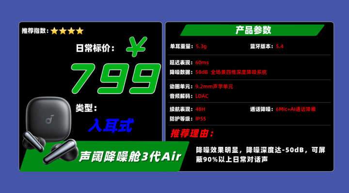 亮点◆音质表现上,它采用了ACAA 4.0同轴双单元组合(10.5mm低频+4.6mm高频),在低频段下潜充足,力度十足但略偏重;中频人声自然饱满,高频亮度和细节解析都很不错,空间感明显。支持LDAC高清传输与空间音频,听现场录音或电影时环绕感强。蓝牙5.4芯片连接反应迅速,稳定性良好。续航表现强劲,关闭降噪功能可达到约48小时续航,属于长续航梯队,适合经常出差或长时间使用的用户。