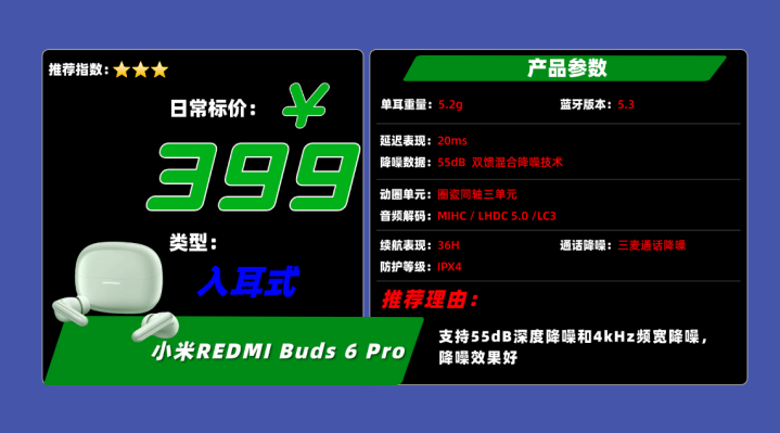 亮点◆这款蓝牙耳机抗干扰性能达到普通蓝牙耳机的三倍,全新升级的蓝牙5.4芯片,在15米内可以稳定连接,在低延迟、低损耗方面的表现更加突出。总续航达到25H,,彻底告别电量焦虑。搭配3Mic+AI通话降噪,身在嘈架环境中,对方也听得清你的声音。耳机整体配置比很多高端耳机性价比都高,这在平价耳机中是极为少数的。